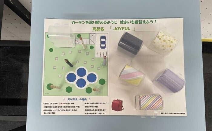 今回は、クリアファイルでランドセルを作り、まちづくりを行うというテーマで制作しました。 作品紹介では、このランドセル型の建物に込められた、ユニークであたたかい特長が紹介されています。 ☆ JOYFUL の特長 ☆ ・震度7でもぶれない、大丈夫な構造と精神 ・季節や気分に合わせて取り換え可能な内装(手動) ・開閉式特大トップライトによる外光・外気の取り込み(手動) ・家族との会話も弾むワンルーム ・馴染みやすい外観 ・開放感あふれる全面吹き抜け ・最悪の場合は背負って逃げろ!