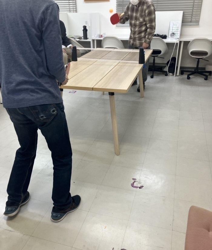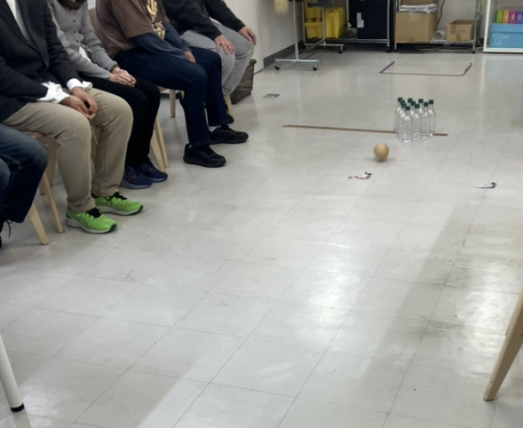 卓球では、最初は普通のラケットで行い、その後に遊び心も取り入れ、ラケットの代わりにペットボトルを使って行いました。 思うようにボールが返らず苦戦する場面もありましたが、その分笑い声があふれ、 自然と体も動き、軽く汗をかくほどの良い運動になりました。