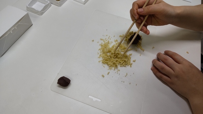 また、先生が作ってくださった練り切りをその場で堪能し、自分で作った栗きんとんはお土産としてお持ち帰りいただきました。