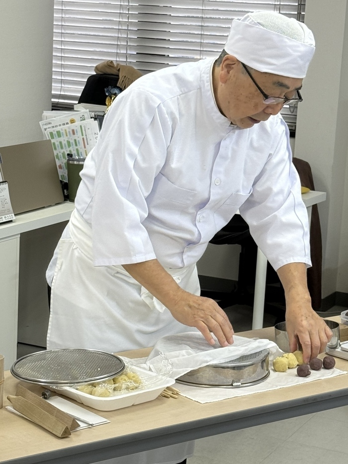 土曜日に開催したイベントでは、老舗和菓子店に40年以上ご勤務されていた伊藤さんに講師として来ていただき、和菓子教室を行いました。 伊藤さんはとてもお優しく、気さくにお話してくださる素敵な先生で、終始和やかな雰囲気の中で教室が進みました。